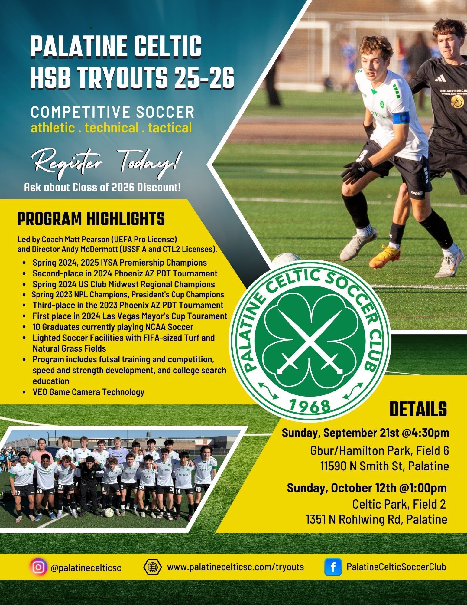 - Led by Coach Matt Pearson (UEFA Pro License)and Director Andy McDermott (USSF A and CTL2 Licenses)
